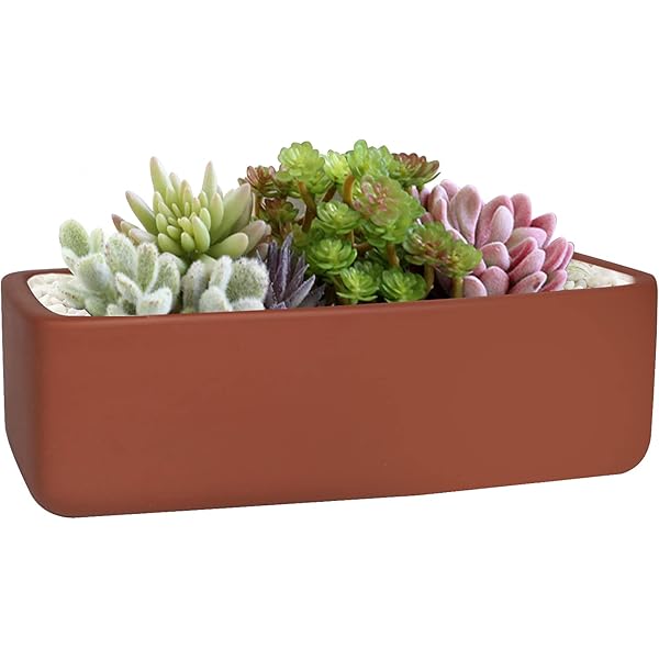Turquoise Rectangular Ceramic Succulent Planter Box With Saucer 14 In Mygift